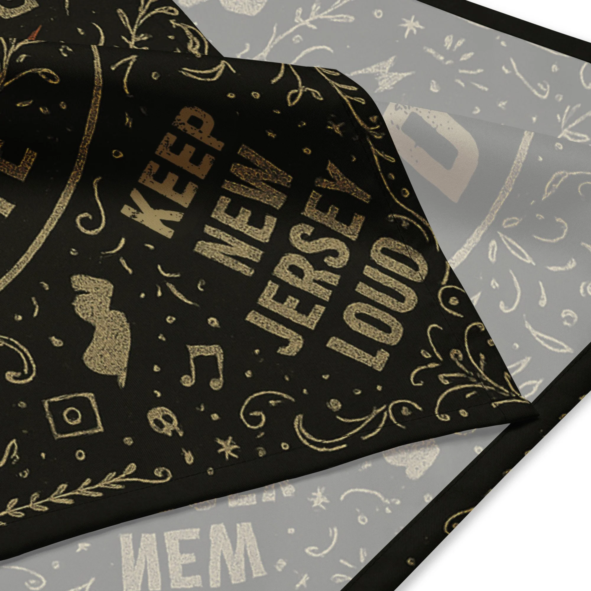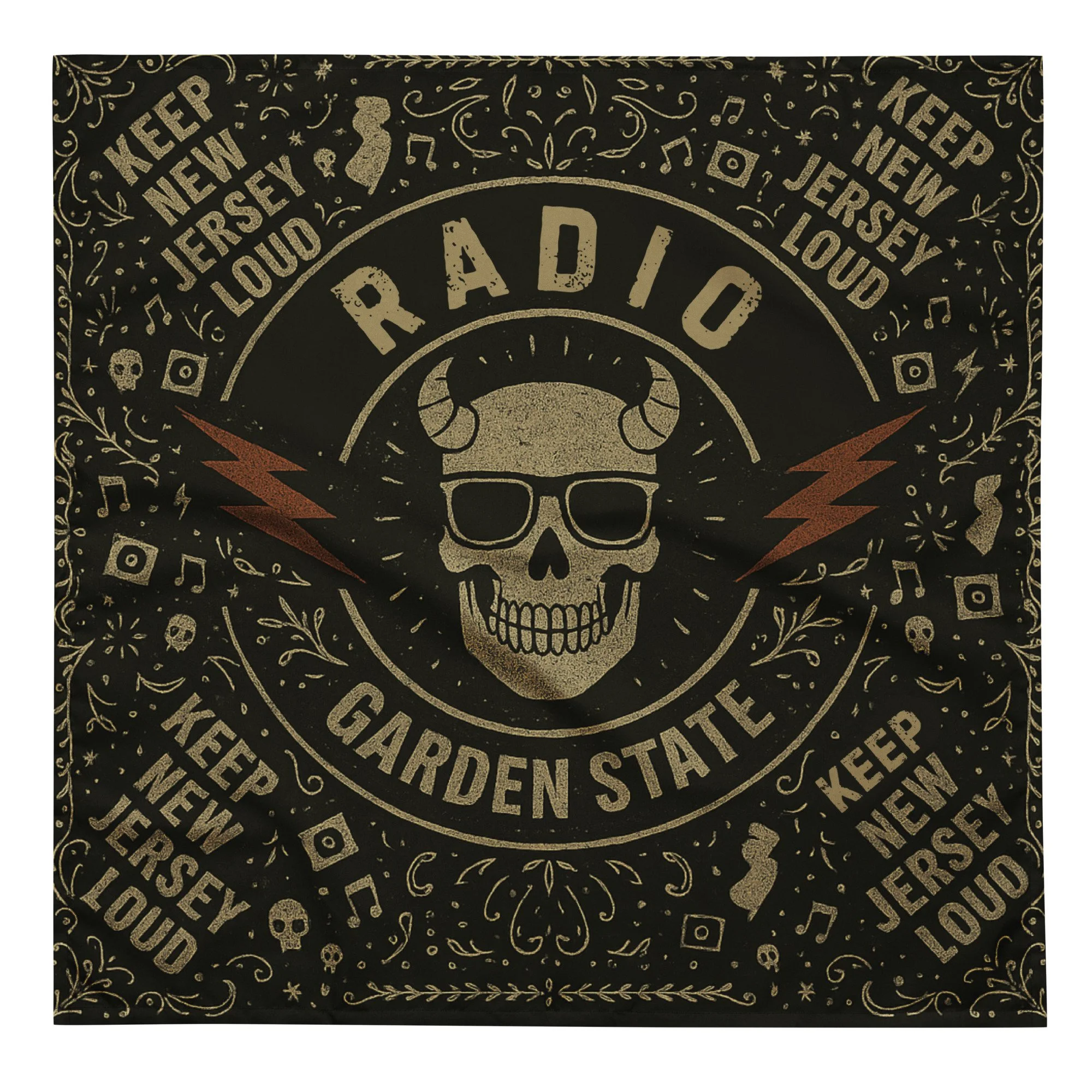 Crank up the grit and wrap yourself in Jersey pride with the Radio Garden State "Keep New Jersey Loud" Outlaw Bandana. Inspired by classic biker paisley designs with a punk rock edge, this black-and-beige statement piece is loaded with gritty textures, bold lightning bolts, and our signature horned skull. Every corner shouts KEEP NEW JERSEY LOUD, making it the perfect accessory for gigs, rides, or just raising hell. Whether you wear it, hang it, or frame it, this bandana keeps the outlaw spirit alive.